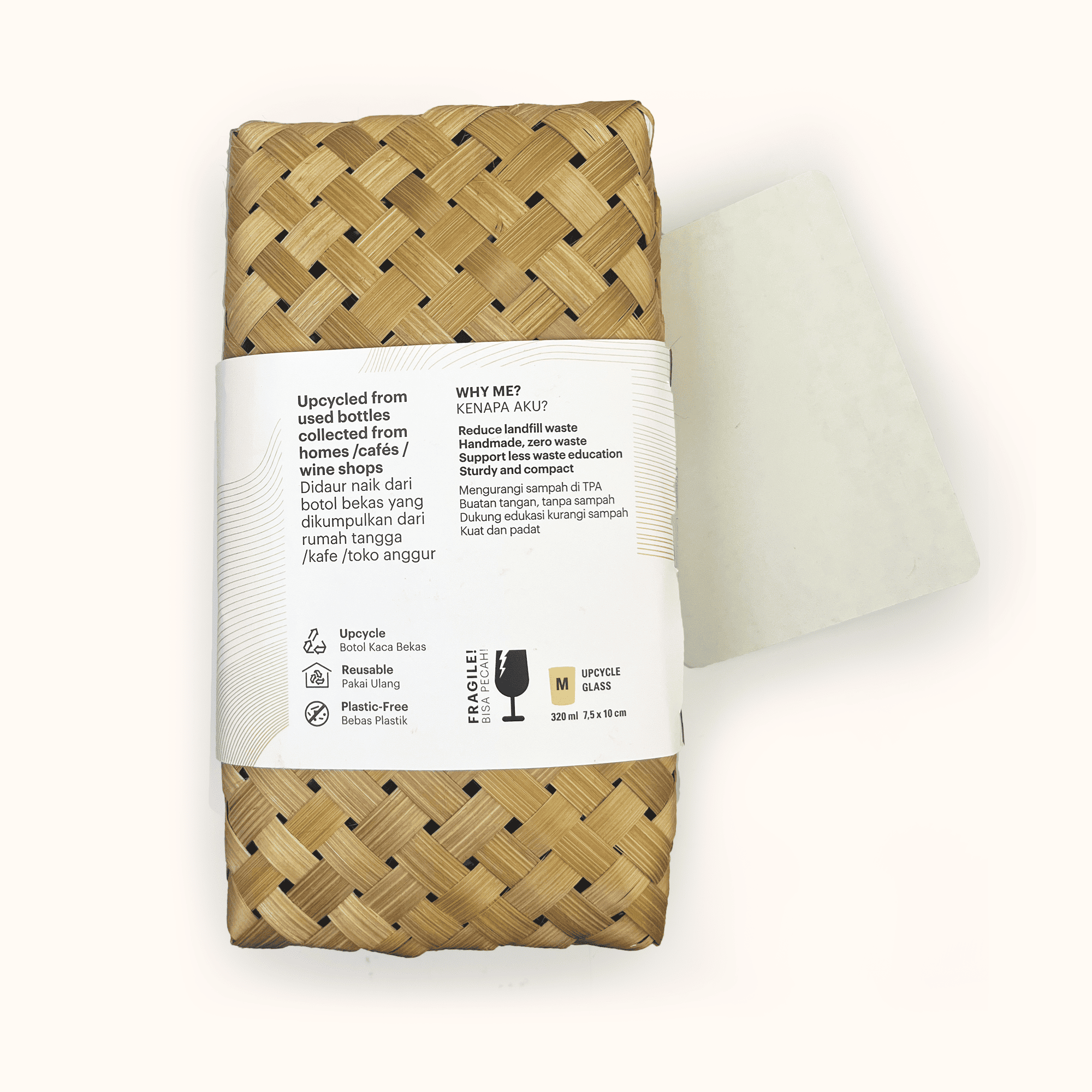 Oleh karena itu kami membuat produk daur ulang sampah botol kaca yang berasal dari rumah tangga, cafe, serta toko minuman anggur. Gelas kaca ini dapat dipakai ulang dan aman untuk minuman bersuhu tinggi maupun rendah. Cocok untuk digunakan sebagai gelas kopi, teh, jamu, dan soju.