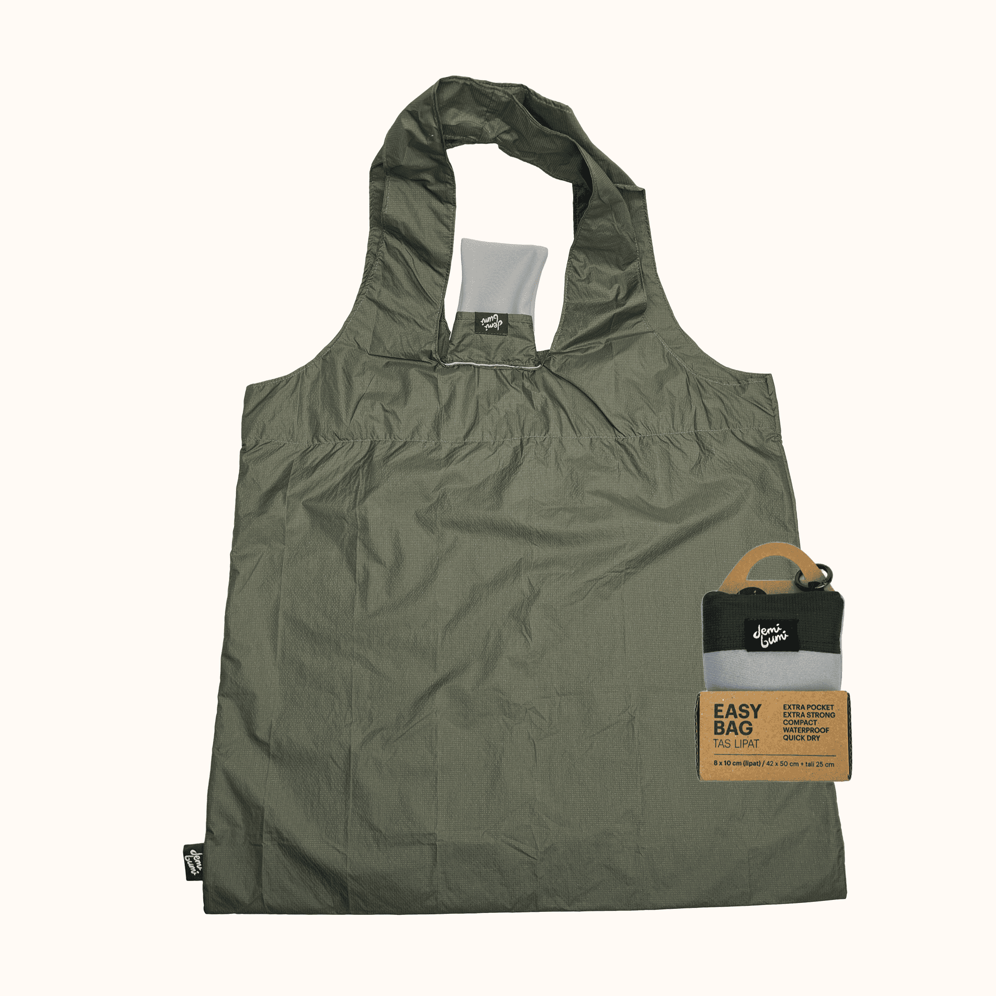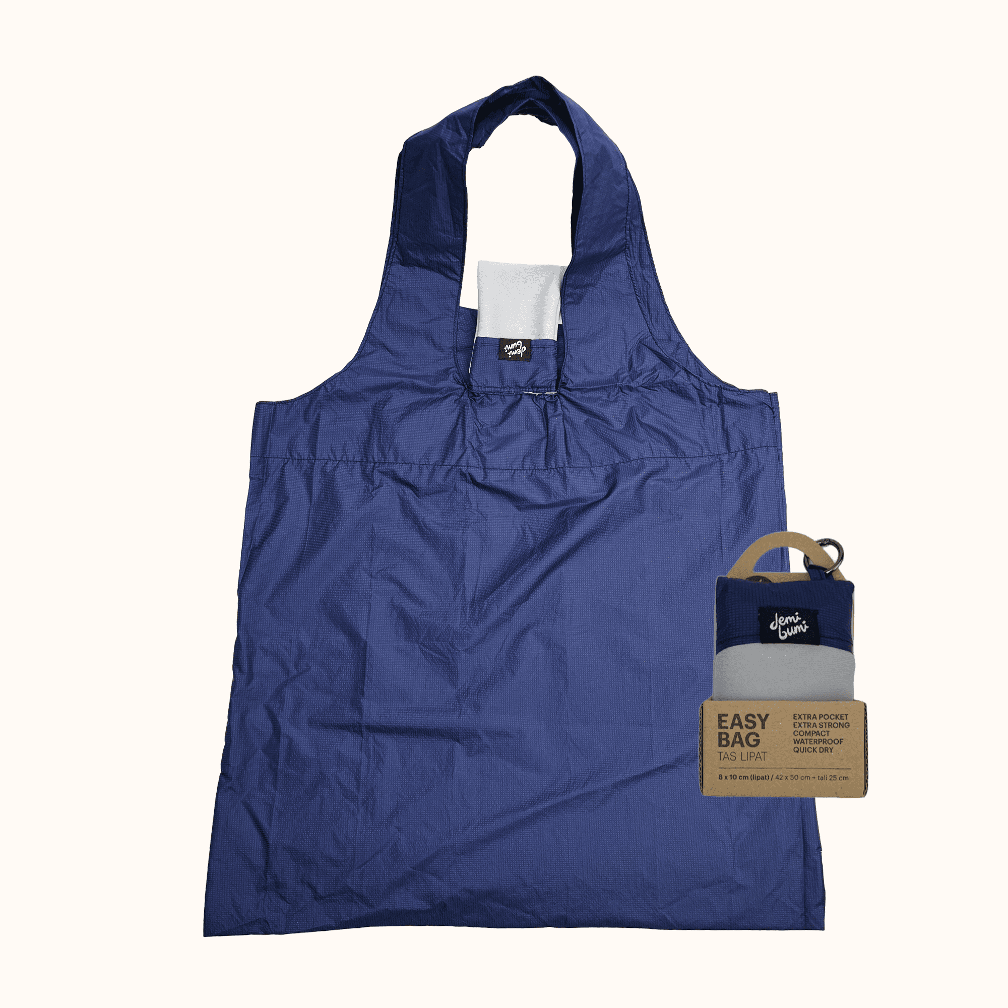Produk tas terbaru Demibumi yang merupakan upcycle pemanfaatan dari sisa kain pabrik tekstil. Cocok untuk dipakai berbelanja kebutuhan sehari – hari karena bahannya yang ringan namun kuat serta kapasitas yang besar. Selain itu terdapat kantong pada bagian dalam yang dapat digunakan untuk menyimpan ponsel dan dompet saat berbelanja. Bentuknya pun ringkas, dapat dilipat menjadi ukuran kecil dan dimasukkan kedalam kantong ataupun dijadikan gantungan kunci sehingga praktis dibawa