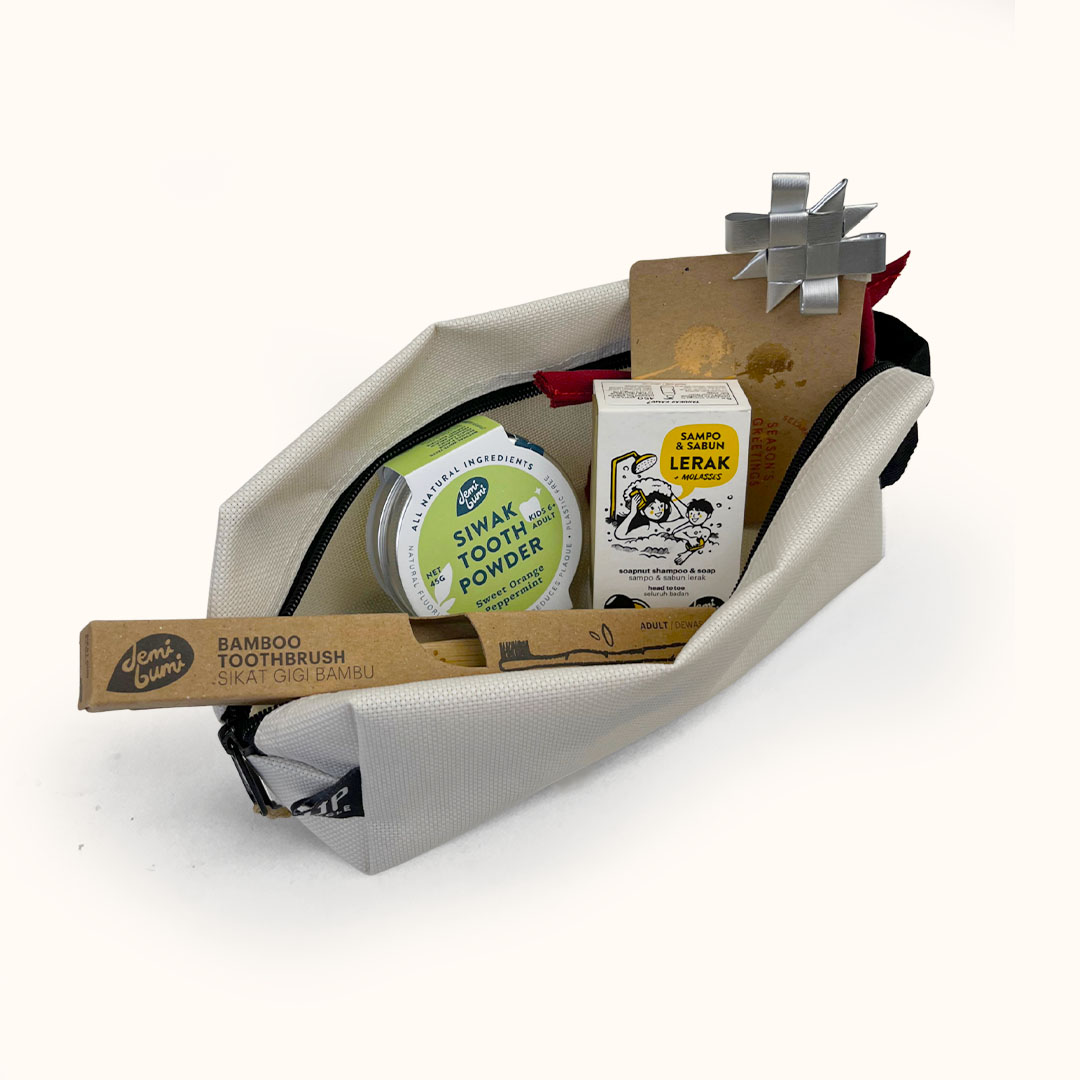 Produk upcycle yang memanfaatkan bahan sisa tirai jendela menjadi sebuah pouch serbaguna yang kuat dan elegan sehingga cocok untuk menyimpan berbagai keperluanmu selama bepergian. Oleh karena itu, warna dan jenis bahan terbatas sehingga produk akan dikirimkan sesuai dengan ketersediaan yang ada. Ukuran : 20 x 9 x 9 cm